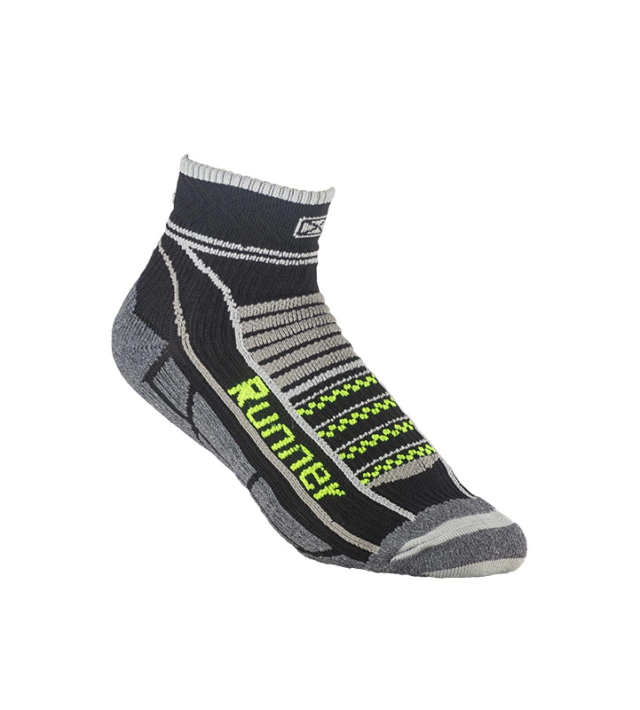 Medias de compresión pensadas para el deportista. Desarrolladas para contribuir a la re-circulación del sistema sanguíneo y a la contención de los músculos del pie. Colaboran en la prevención de la fascitis plantar por la compresión transmetatarsal. Desarrolladas específicamente para Trail Running. Puño doble, caña y pie anatómicos que brinda un calce perfecto. Diseñadas para pie izquierdo y pie derecho. Canales de ventilación y zonas de amortiguación. El acolchado en la zona del empeine y el talón, disminuye el impacto y las ondas de choque que se generan a cada paso que das. Los canales de ventilación, ayudan a mantener los pies secos, esto es muy importante ya que la piel húmeda es una de las principales causas de ampollas. Costura de puntera extra plana. Talón y puntera reforzados. Secado rápido gracias a su composición.